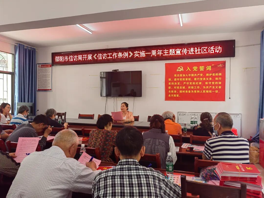 5月26日,邵陽市信訪局宣講團來到大祥區(qū)城西街道湘印機社區(qū),開展《條例》宣傳進社區(qū)活動。