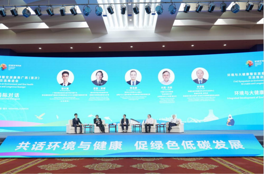 ??2024年5月18日,張興贏(左一)在環(huán)境與大健康暨宜居康壽廣西交流推進會上主持國際對話會。新華社發(fā)