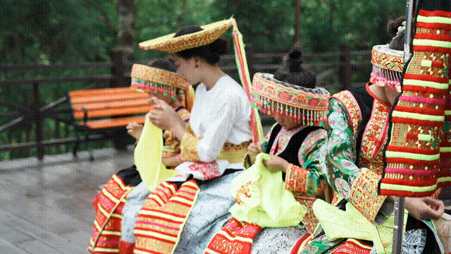 崇木凼古樹(shù)林里,花瑤女子正在挑花