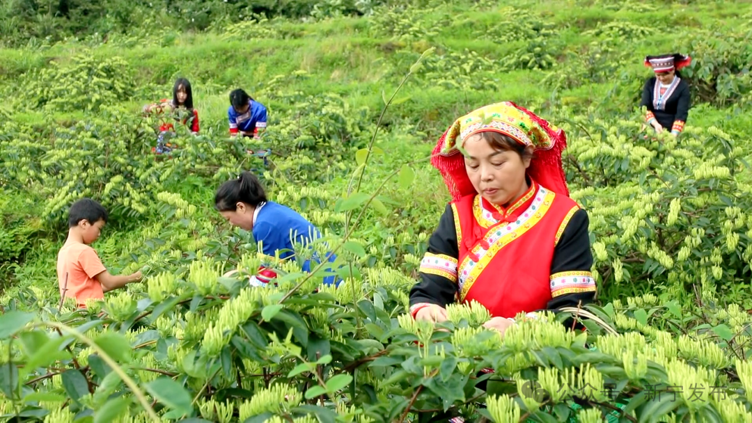 7月下旬以來,最是新寧縣一渡水鎮(zhèn)潘家村群眾最忙碌的時候,每天早早起床,趁著天氣涼快,挽著竹籃,背上竹筐,帶上勾鐮,前往槐米林采摘槐米。當前正是槐米成熟季,潘家村漫山遍野的金槐顆粒飽滿、掛滿枝頭,種植戶們搶抓有利天氣,對槐米進行采摘晾曬。