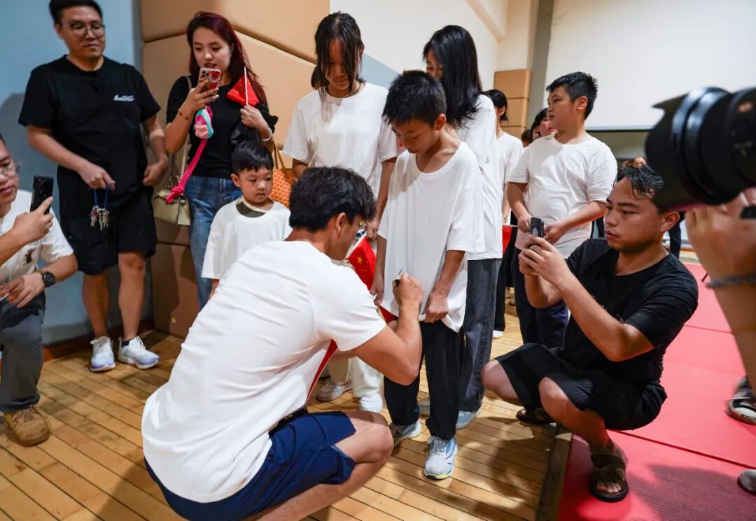 “伍鵬哥哥,你太棒了!”邵陽體育運動學(xué)校運動員梅倩華請伍鵬為自己簽名,滿是對偶像的崇拜:“我以后也要像你一樣,為國爭光!”