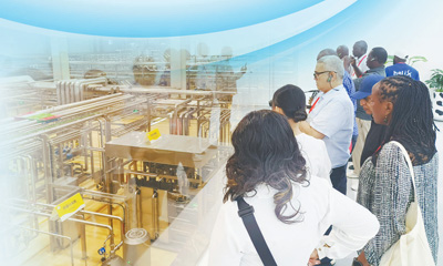 國際民間減貧合作網(wǎng)絡考察團的非洲代表在內(nèi)蒙古自治區(qū)呼和浩特市參觀伊利現(xiàn)代智慧健康谷。 牛鵬飛攝