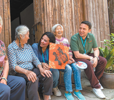 5月23日,非洲青年在浙江金華市金東區(qū)嶺下鎮(zhèn)坡陽古街和當?shù)鼐用窠涣?。 胡肖飛攝(影像中國)