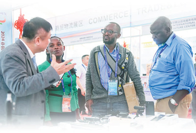 5月9日,在肯尼亞首都內(nèi)羅畢舉辦的中非經(jīng)貿(mào)博覽會走進非洲巡展上,中國參展商與非洲客戶交談?! ⌒氯A社記者 李亞輝攝