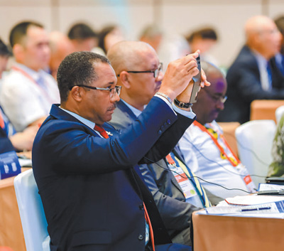 第七屆中非民間論壇、第七屆中非青年領(lǐng)導人論壇上,非洲嘉賓認真聽會并拍照記錄?! 〗?浪攝