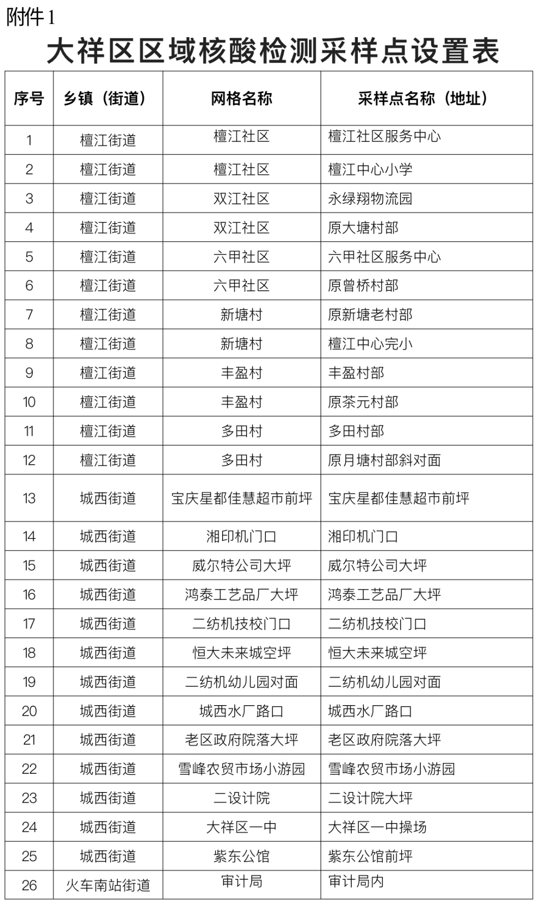 1.采樣地點(diǎn)詳見大祥區(qū)區(qū)域核酸檢測采樣點(diǎn)設(shè)置表。各采樣點(diǎn)分時段錯峰采樣,先采完綠碼人員后,再采黃碼人員。