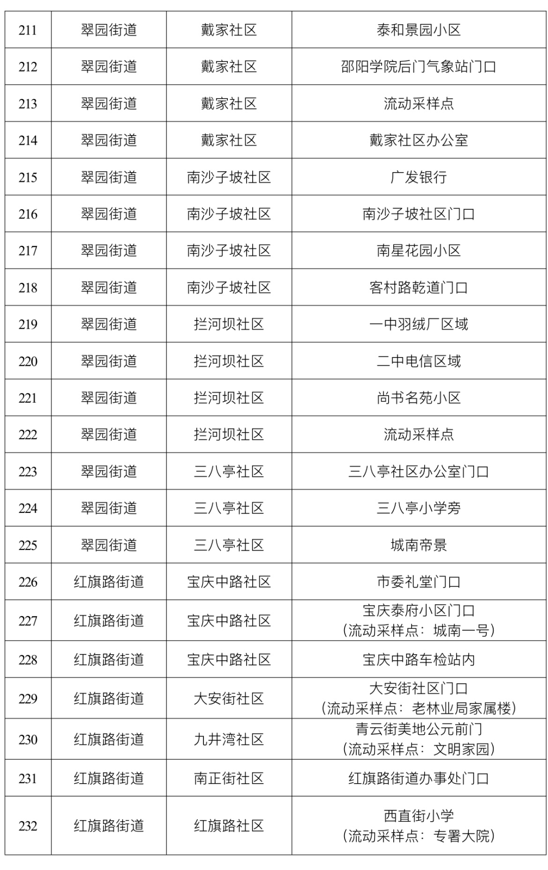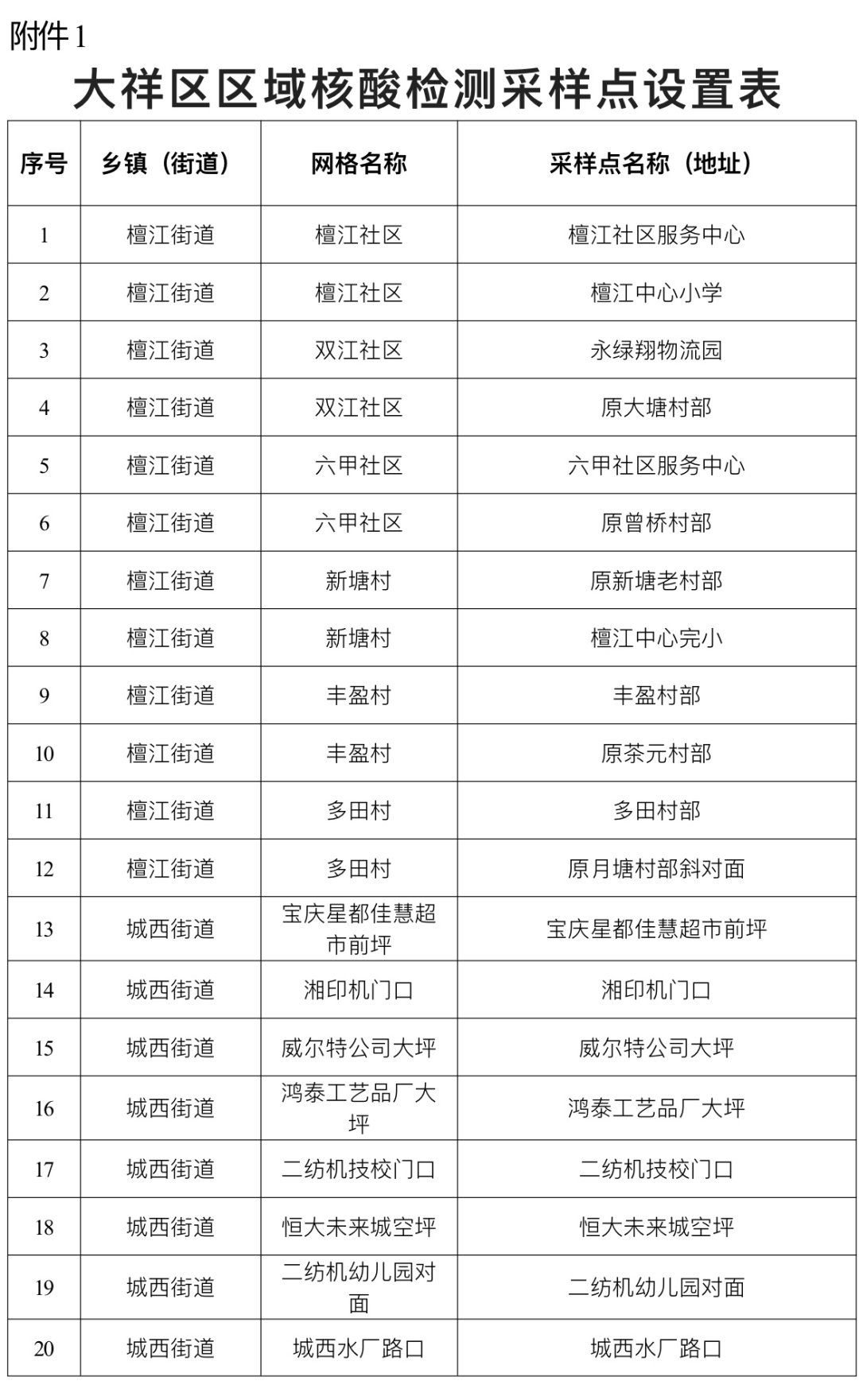 采樣地點(diǎn)詳見大祥區(qū)區(qū)域核酸檢測(cè)采樣點(diǎn)設(shè)置表。各采樣點(diǎn)分時(shí)段錯(cuò)峰采樣,先采完綠碼人員后,再采黃碼人員。