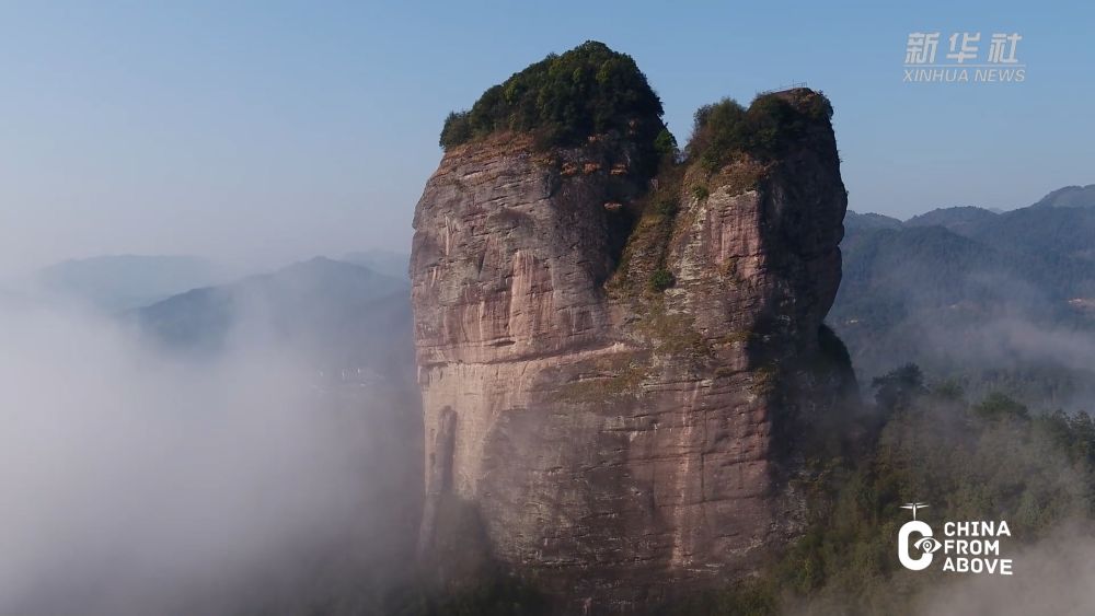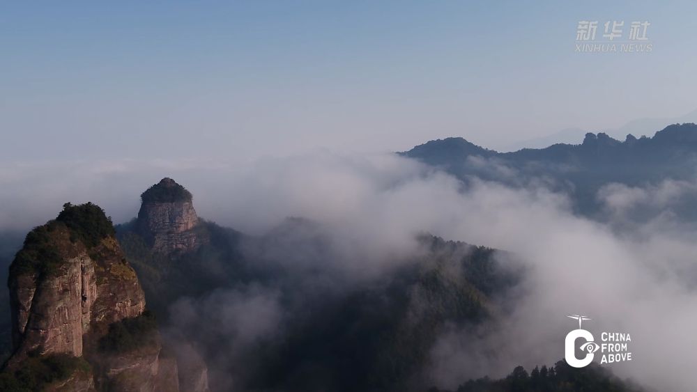 位于湖南省新寧縣的崀山是一座天然的丹霞地貌博物館。云霧縹緲間,山峰如仙島點(diǎn)綴其中,如仙似幻,無限詩情畫意氤氳而生。