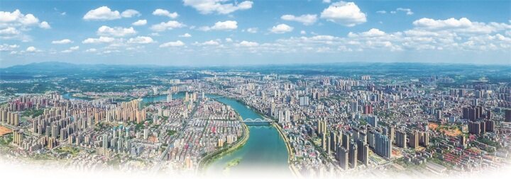 隨著文明創(chuàng)建工作蓬勃開展,邵陽這座以文明為底色的千年古城日新月異、拔節(jié)生長。圖為8月15日的市區(qū),藍天,白云,碧水,美麗畫卷入眼來。 邵陽日報全媒體記者 申興剛 攝