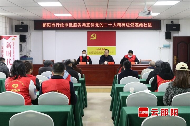 市行政審批服務局志愿者在愛蓮池社區(qū)宣講黨的二十大精神