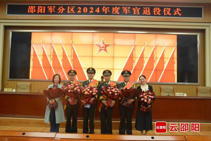 儀式在莊嚴的國歌聲中拉開帷幕。市委常委、邵陽軍分區(qū)司令員諸葛軍宣讀了2024年軍官退役命令,隨后向四位退役軍官及到場的兩位家屬獻上鮮花。