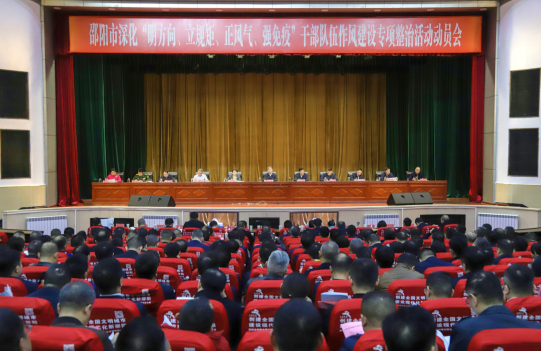 邵陽新聞網3月21日訊(楊立軍 劉其潔)3月20日下午,邵陽市深化“明方向、立規(guī)矩、正風氣、強免疫”干部隊伍作風建設專項整治活動動員會召開。會議深入學習貫徹習近平總書記關于黨的自我革命的重要思想,決定從3月至12月底在全市開展干部隊伍作風建設專項整治活動,堅決整治全市干部隊伍作風建設中存在的突出問題,以新氣象新作為推動高質量發(fā)展取得新成效。市委書記嚴華出席并講話,市委副書記、市長華學健主持。